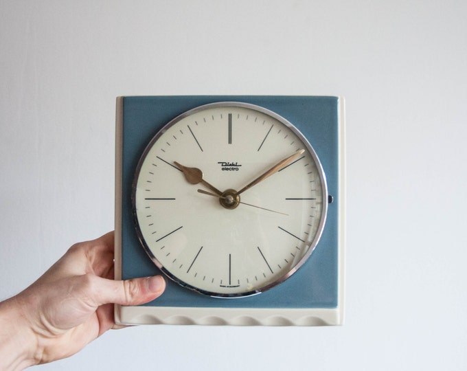 Blue Kitchen Clock Ceramic Electronic Wall Clock Vintage Etsy